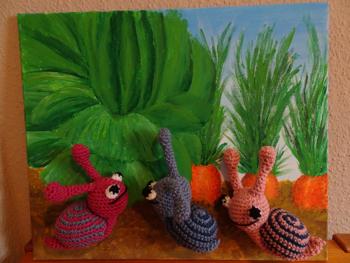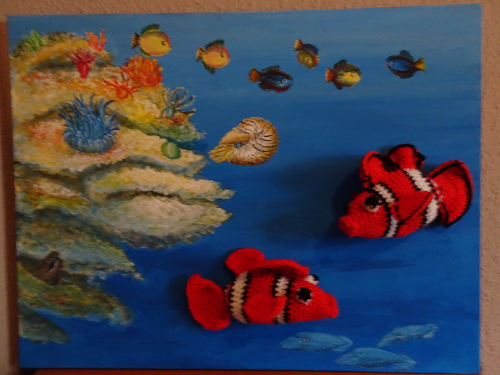 ChrisNic sind von Hand gemalte Bilder, in denen von Hand gehäkelte Tiere fixiert sind. Die Bilder werden von 2 Personen gefertigt